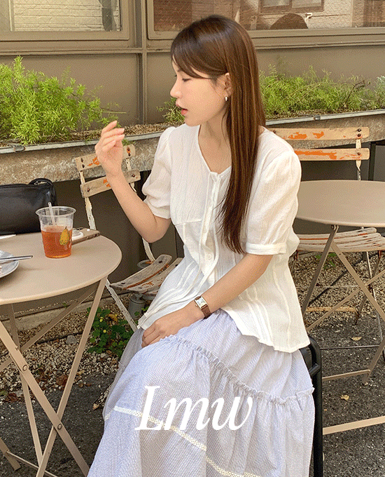 [휴가룩][썸머🍉][l.m.w] 요루 링클 르아 핀턱 셔링 블라우스 (bl)