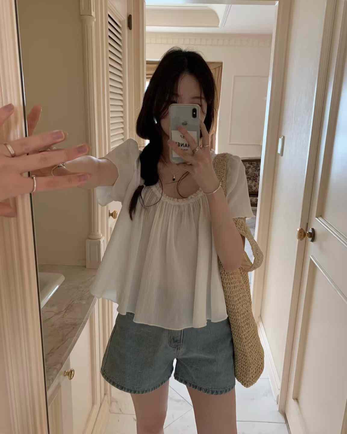 (sale/당일) 프리티영띵 pyt 밍키 유넥 U넥 요루 레이스 셔링 핀턱 반팔 블라우스