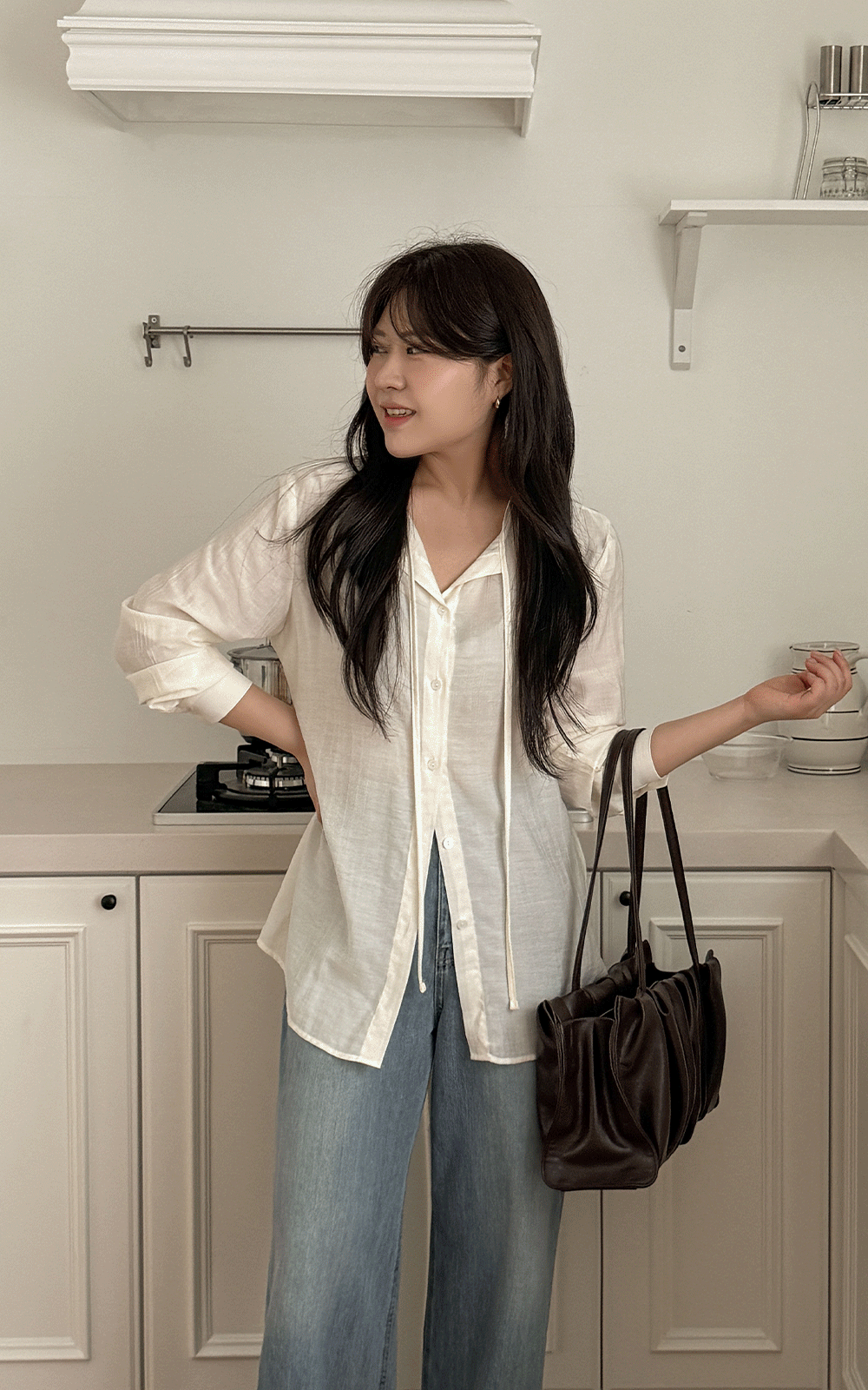 [슽체형/데이트룩]밀리 스트링 블라우스