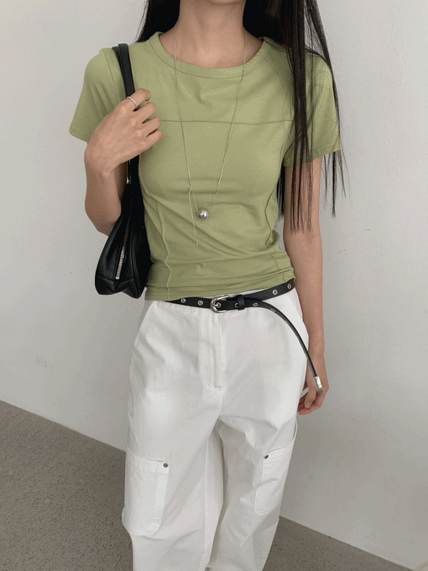 절개 반팔 티 여성 슬림핏 이너 라운드 티셔츠 기본티(4color)