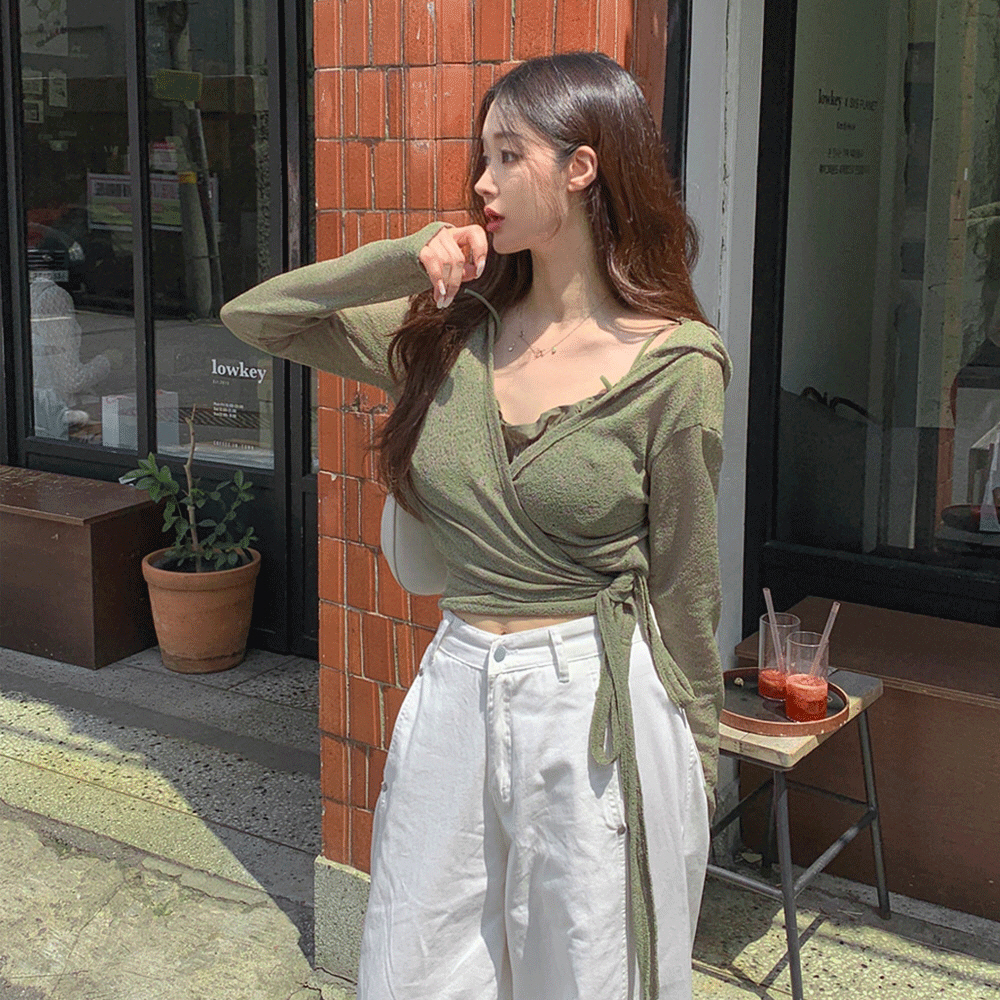 무배🚀[워터밤💚소장추천] 후드 랩 시스루 가디건 브이넥 스트랩 크롭 얇은 긴팔 니트 볼레로 봄 여름 데일리룩 데이트룩 캐주얼룩 Y2K 페스티벌룩 페스티벌 아이보리 카키 블랙