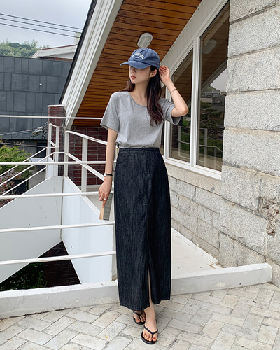 [데님스커트/여름스커트][흑청스커트/여름치마] 뒷밴딩 하이웨스트 데님 롱 스커트 4491