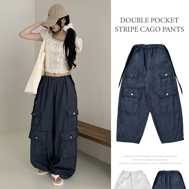 [디벨롭/고퀄리티/여름팬츠] 아델러 밴딩 더블포켓 워크웨어 와이드 스트링 카고 팬츠 (2color)