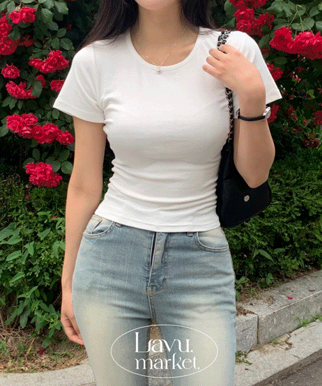 허리잘록~팔뚝살소멸! 캐리 라운드넥 잘록핏 반팔티 4color [슬림핏반팔/팔뚝살커버/말라보이는/기본티/기본반팔/팔뚝살삭제/직장인반팔/출근룩]