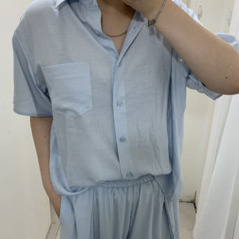 (소라 당일) 베이직 셔츠 반팔 카라 루즈 오버 썸머 여름 남방