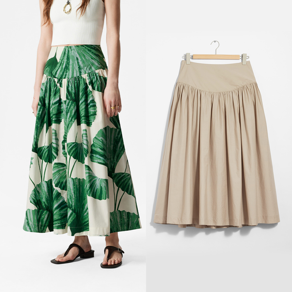 앤아더스토리즈 치마 A라인 경량 플리츠 스커트 그린 베이지