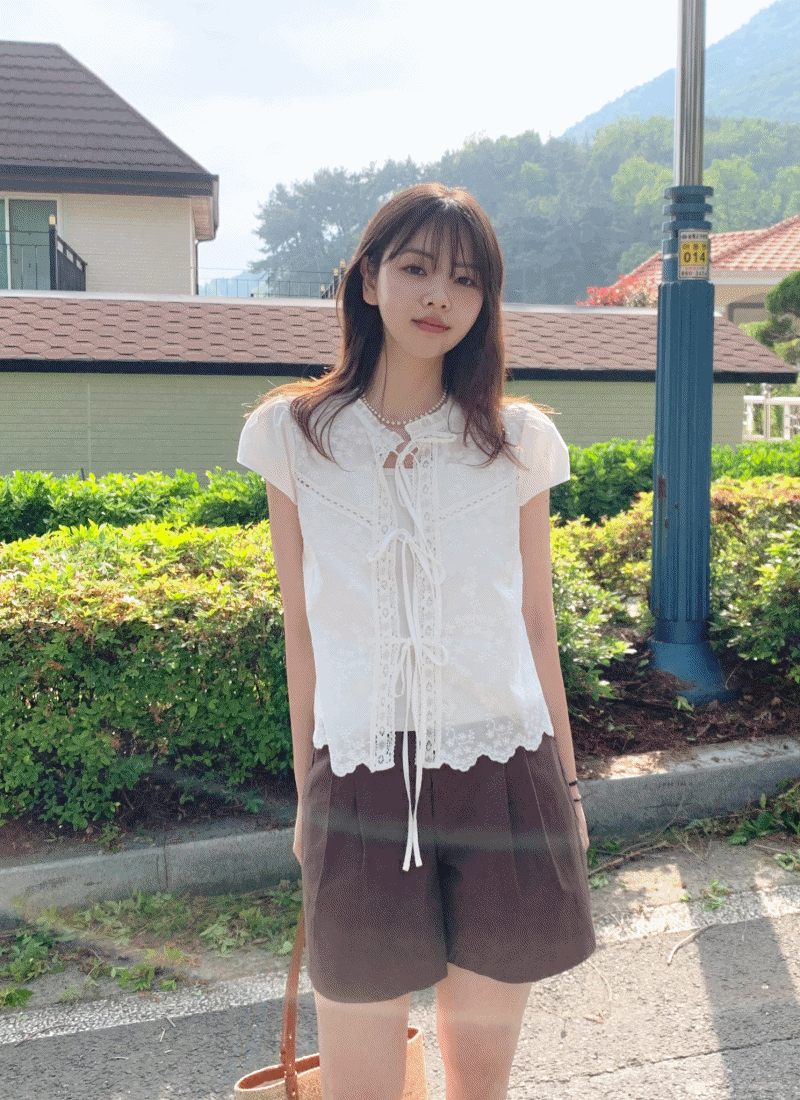 프릴린 반팔 퍼프 레이스 블라우스 [Frillin Blouse] (화이트)