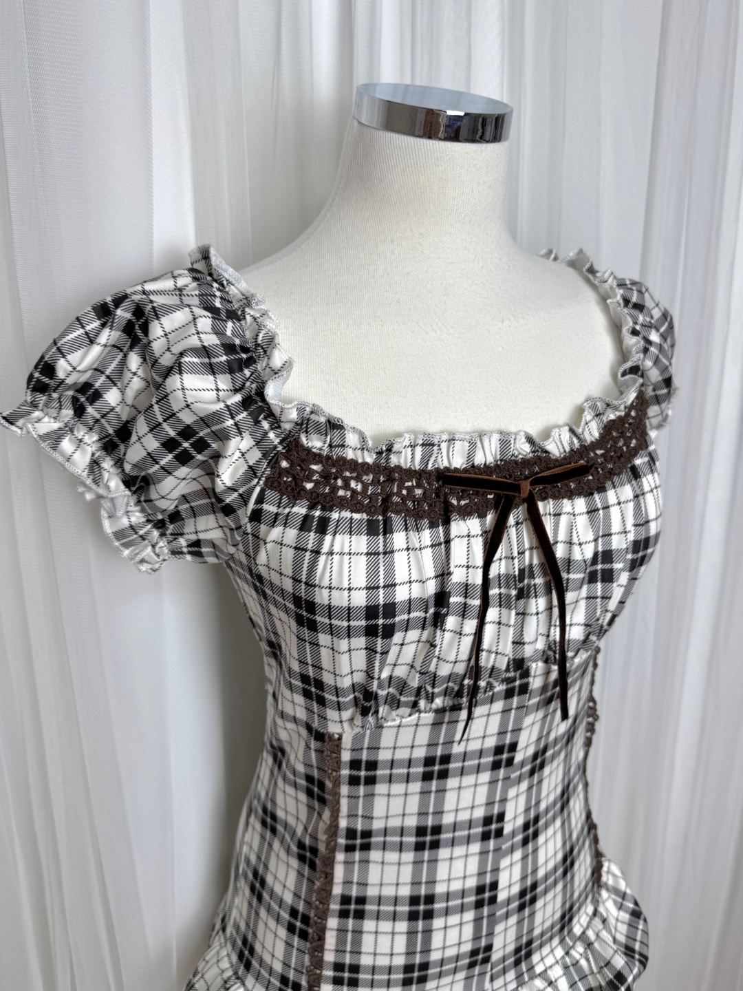 에하 체크 레이스 리본 프릴 셔츠 밴딩 블라우스 캐주얼 페스티벌 휴가 휴양지 모리룩 계곡 러블리 하이틴 발레코어 유니크 느좋 데일리룩 나들이룩 데이트룩 여름 키큰녀 66 77