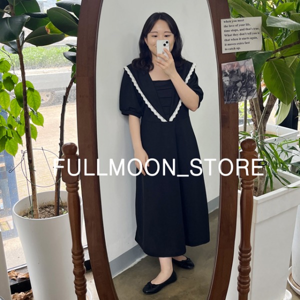 OPS [148 키작녀쇼핑몰] 빅카라 레이스 뒷끈 플레어 반팔 여름 롱원피스