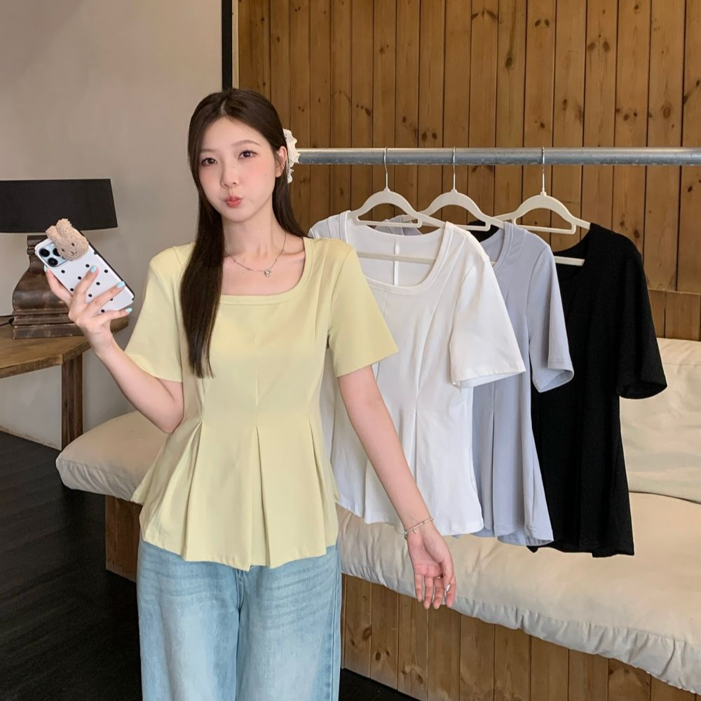 빅사이즈 스퀘어넥 여름 하객 통통녀 출근룩 베이직 상의 티