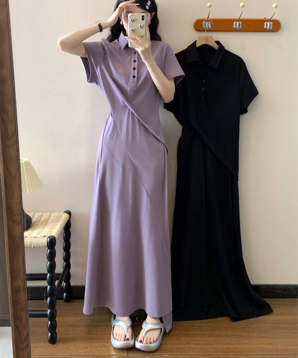 빅사이즈 데일리 꾸안꾸 통통 뒷밴딩 허리 꼬임 보라 블랙 뚱녀 롱원피스