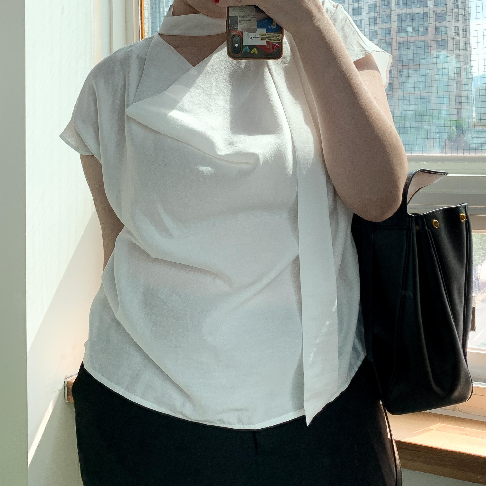 [빅사이즈/66-100]리즈 타이 드레이프 여름 반팔 블라우스 통통녀 출근룩 하객룩 상견례 여름오피스룩
