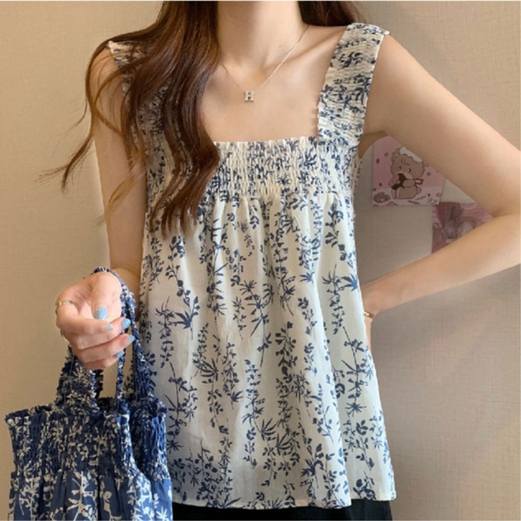 계곡물놀이 민소매티 자체제작 젊줌마 휴양지 꽃무늬 나시 여름 슬림핏