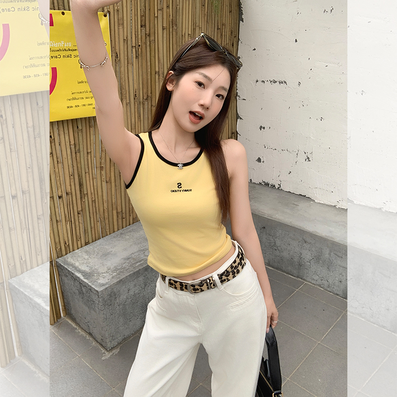 레터 프린팅 배색 슬리브리스 유니크 탑 나시 티셔츠 DG337762 세인트룸EO