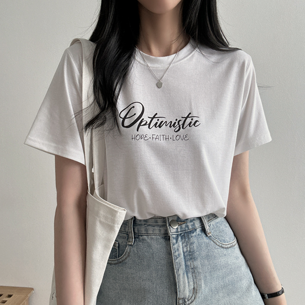 [무배] 미스틱 포인트 레터링 프린팅 스판 반팔 티셔츠