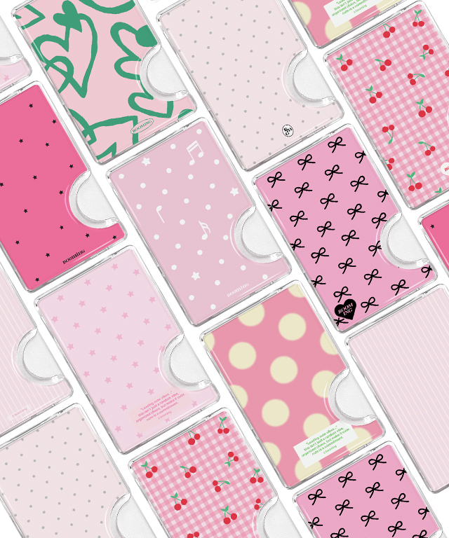 직진⚡/2장 수납💳/ 핑크에디션 맥세이프 에폭시 카드 지갑 포켓 홀더 아이폰 갤럭시 자석 교통 카드 지갑 탈부착 폰꾸미기 폰꾸 우정 친구 선물 커플 리본 도트 체리 별