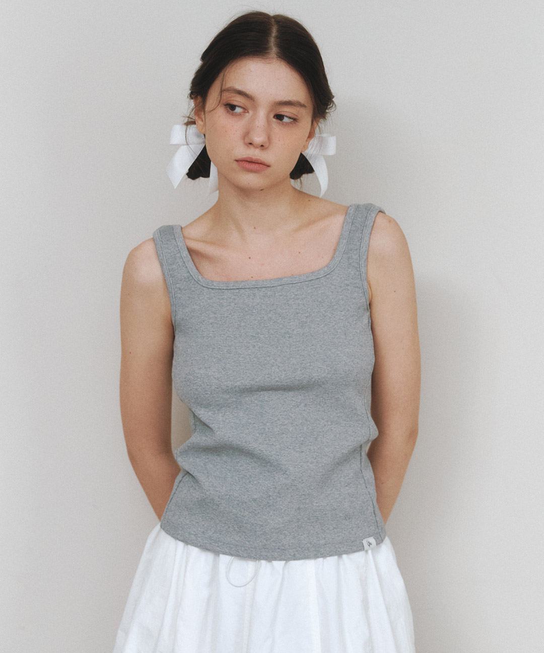Cotton Ribbed Square Neck Sleeveless Top - gray