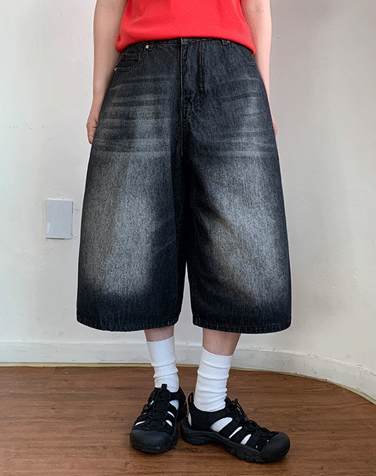 [unisex] 데하스 워싱 데님 버뮤다 팬츠 (2color)