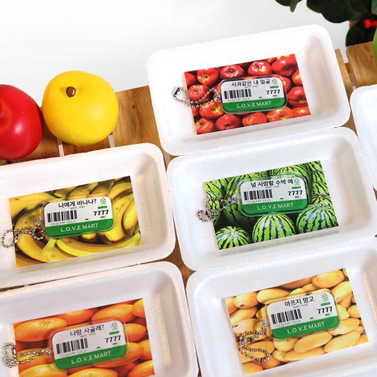 말장난 맛집 과일키링 7종 - 과일말장난 진짜 과일 포장 바코드키링 재치있는 센스있는 밈 문구 말장난키링 웃긴문구 친구 선물 라벨키링 병맛 짤 재밌는키링 열쇠고리
