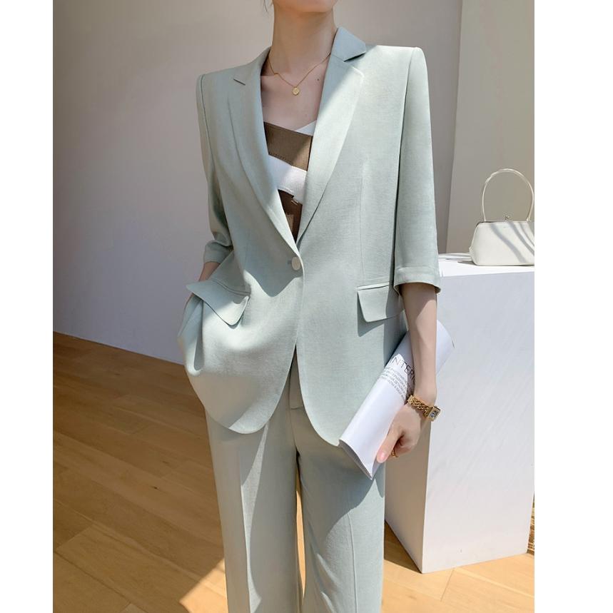7부소매자켓 여성정장세트 민트 오피스룩 올드머니룩 세미정장 웨딩슈트 빅사이즈 여름 하객룩
