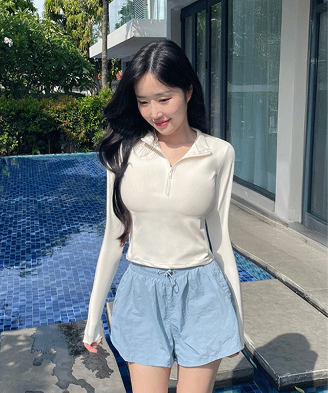 [자체제작]몸매좋아보이는 반집업 래쉬가드 탑 살안타템 햇빛방지 크롭 긴팔 수영복 몸매보정