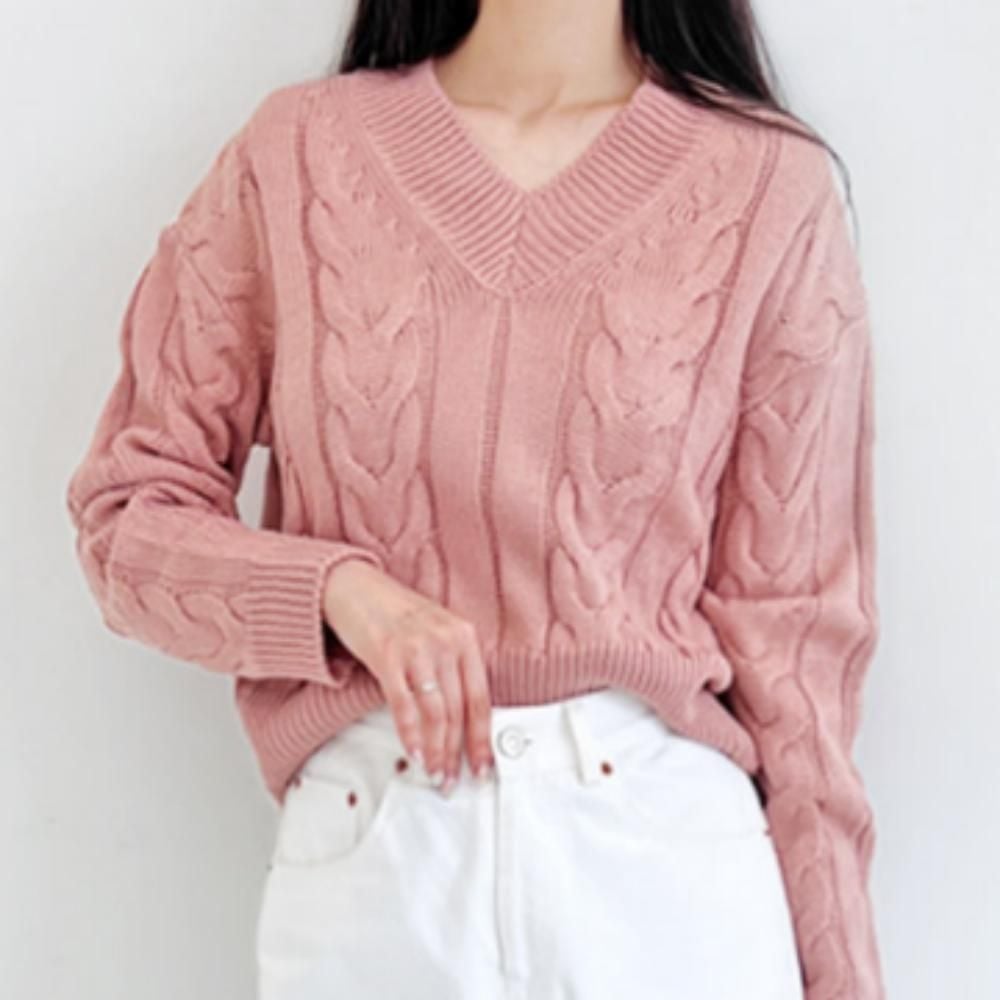 여자 니트 꽈배기 핑크 봄 여성 셀러 티 셔츠 가을