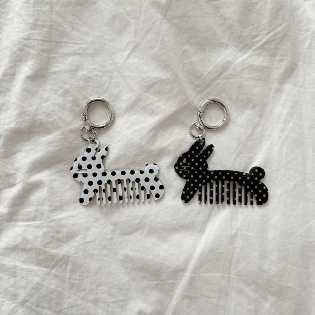 토끼 도트 땡땡이 빗 키링 열쇠고리