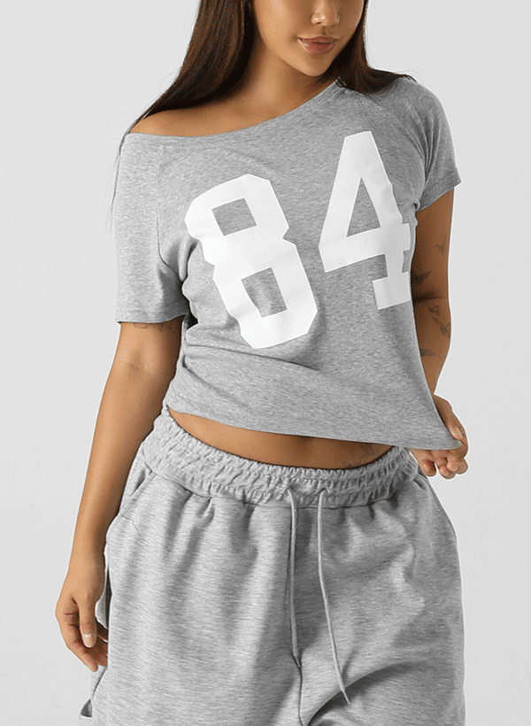 이콘 84 언발오프 보트넥 반팔 티셔츠