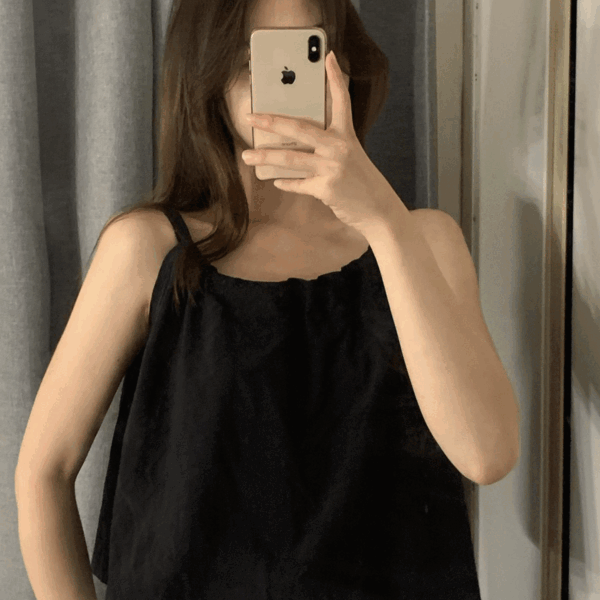 [여리함끝판왕/바스락] 러블리 나시 블라우스 셔링 끈 나일론 휴가룩 -4COLOR