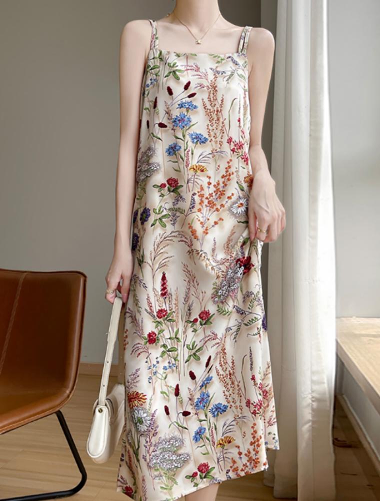 바캉스원피스 휴양지 여성 플로럴 쉬폰 나시 롱원피스 시원한 40대