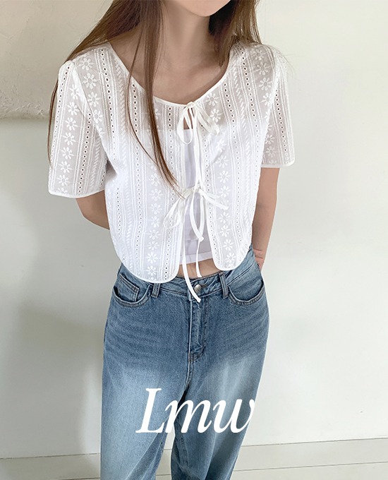 [LAST ONE SALE][썸머🍉][l.m.w] 데이지 펀칭 리본 투웨이 블라우스 (bl)