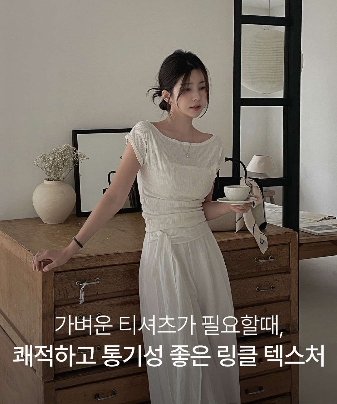 토리즌 여름 보트넥 오프숄더 링클 골지 반팔 티셔츠