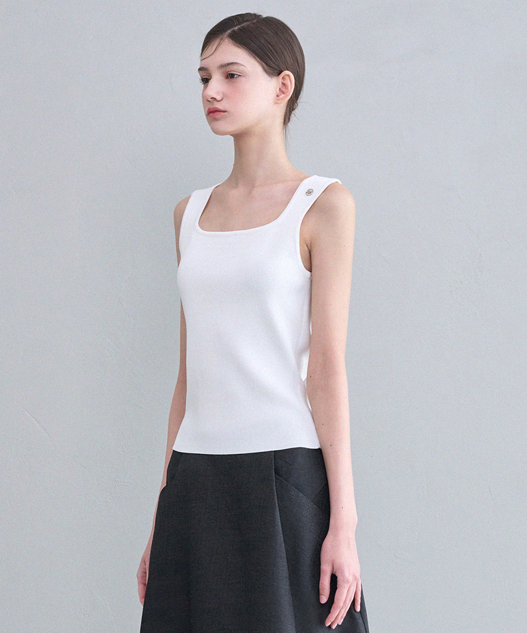 [44-120] 비아트리스 스퀘어 넥 니트 슬리브리스 (여름-데일리룩-클래식룩-격식룩-기본템-이지웨어-스퀘어넥-나시-니트-펜던트-보정-슬림핏-빅사이즈-자체제작)