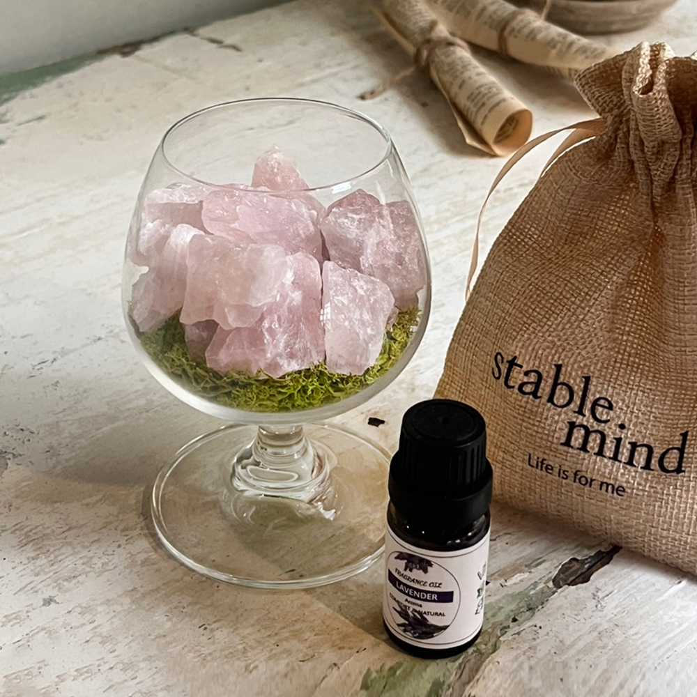 핑크 쿼츠 스톤 디퓨저 오브제 Set [프리미엄 선물 패키지 디퓨져 돌 방향제 집들이 개업 아로마 오일 천연 이끼 실내 인테리어]