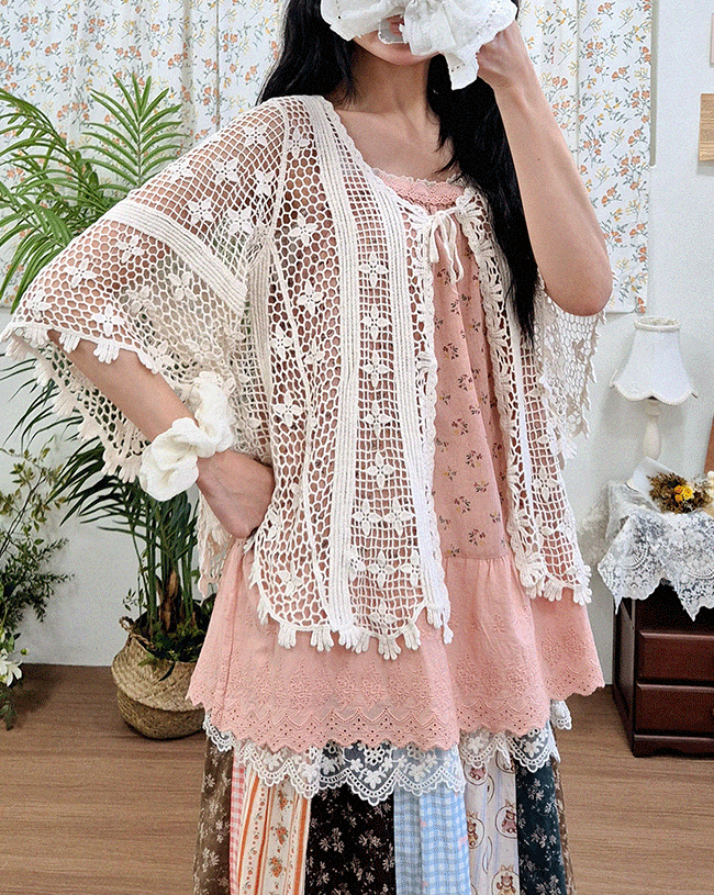 (빅사이즈) 마야 뜨개 가디건 여름 니트 리본 볼레로 모리걸룩