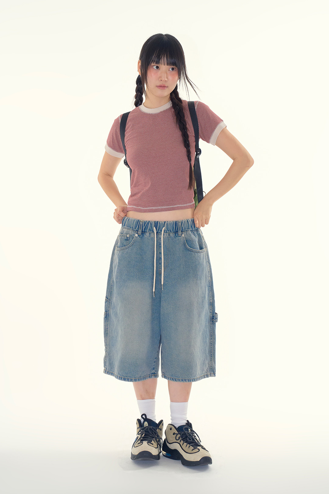 키키 스티치 스트라이프 티