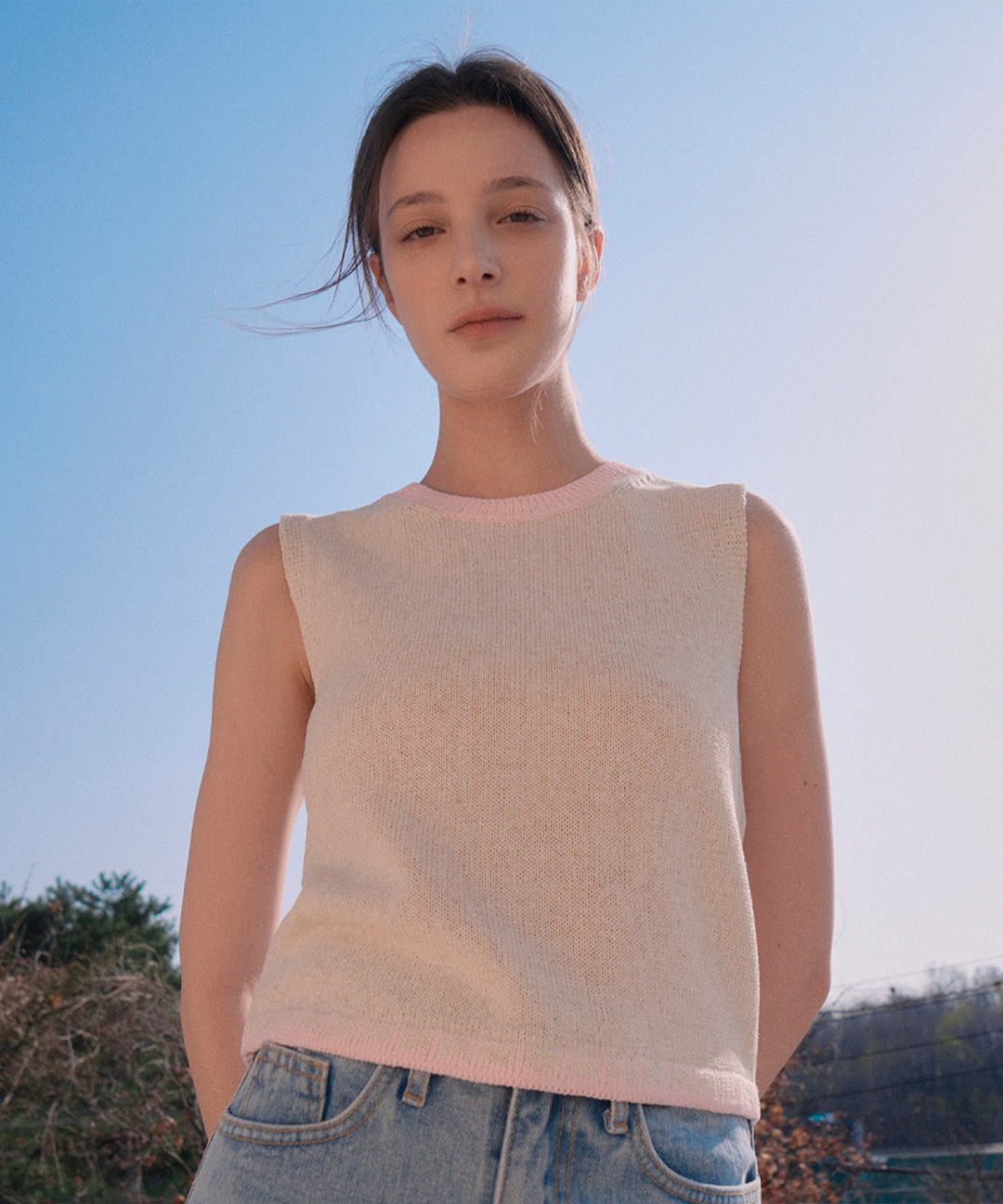 Viscose Color Scheme Knit Sleeveless (pink)