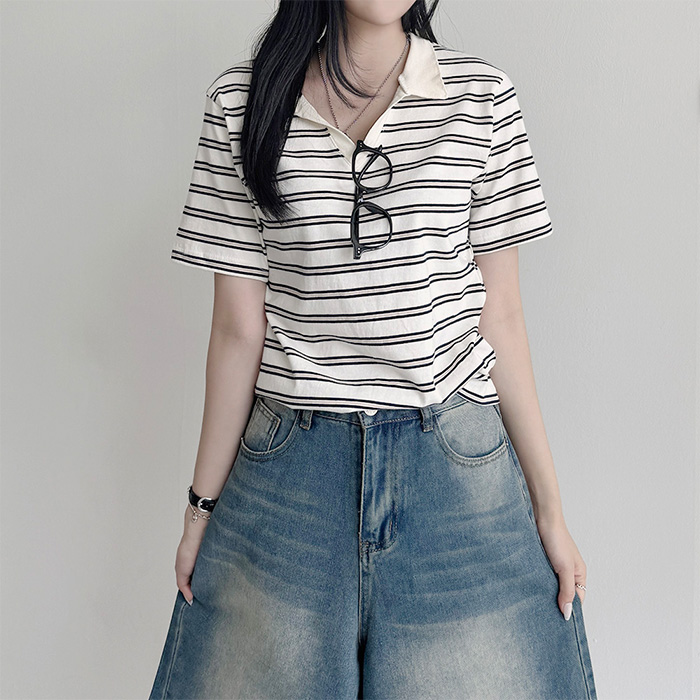 [데일리핏✨/국내생산] 데이지 불규칙 단가라 포인트 브이넥 카라 반팔티