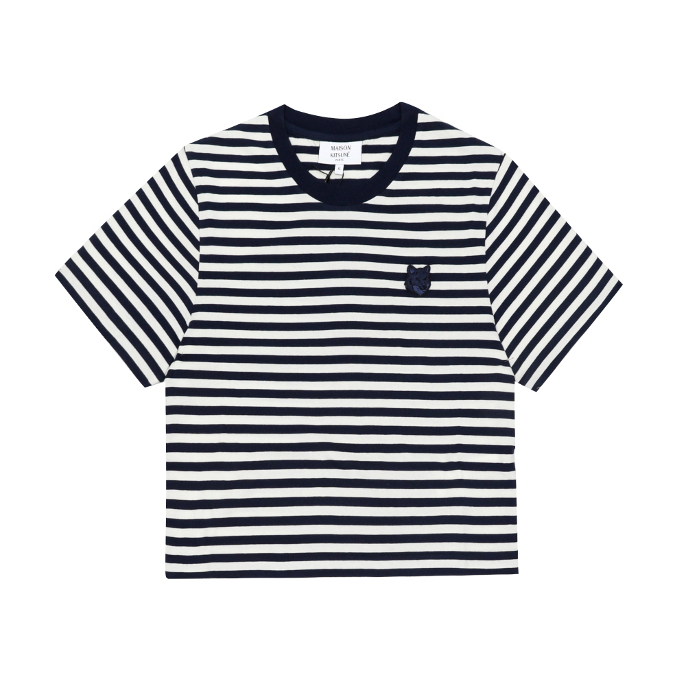 메종키츠네 OW00110KJ0008 0243 볼드 폭스 헤드 패치 멀티 스트라이프 여성 반팔티