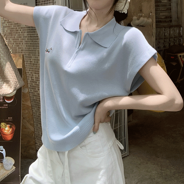 [데일리/여름코디] 스위 카라 반집업 반팔 니트