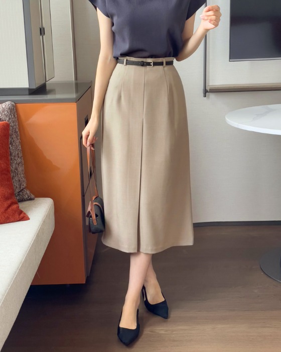 델라 핀턱 A라인 롱 스커트 (벨트set)