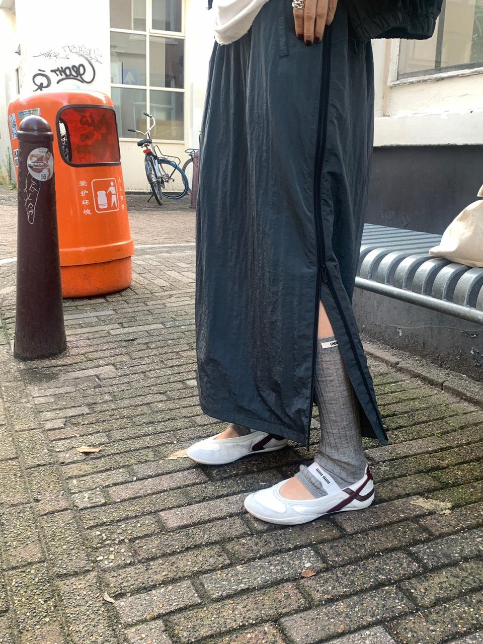 [차콜 당일출고] UNDERSON 언더슨 세라 스커트 지퍼 밴딩 롱 나일론 치마