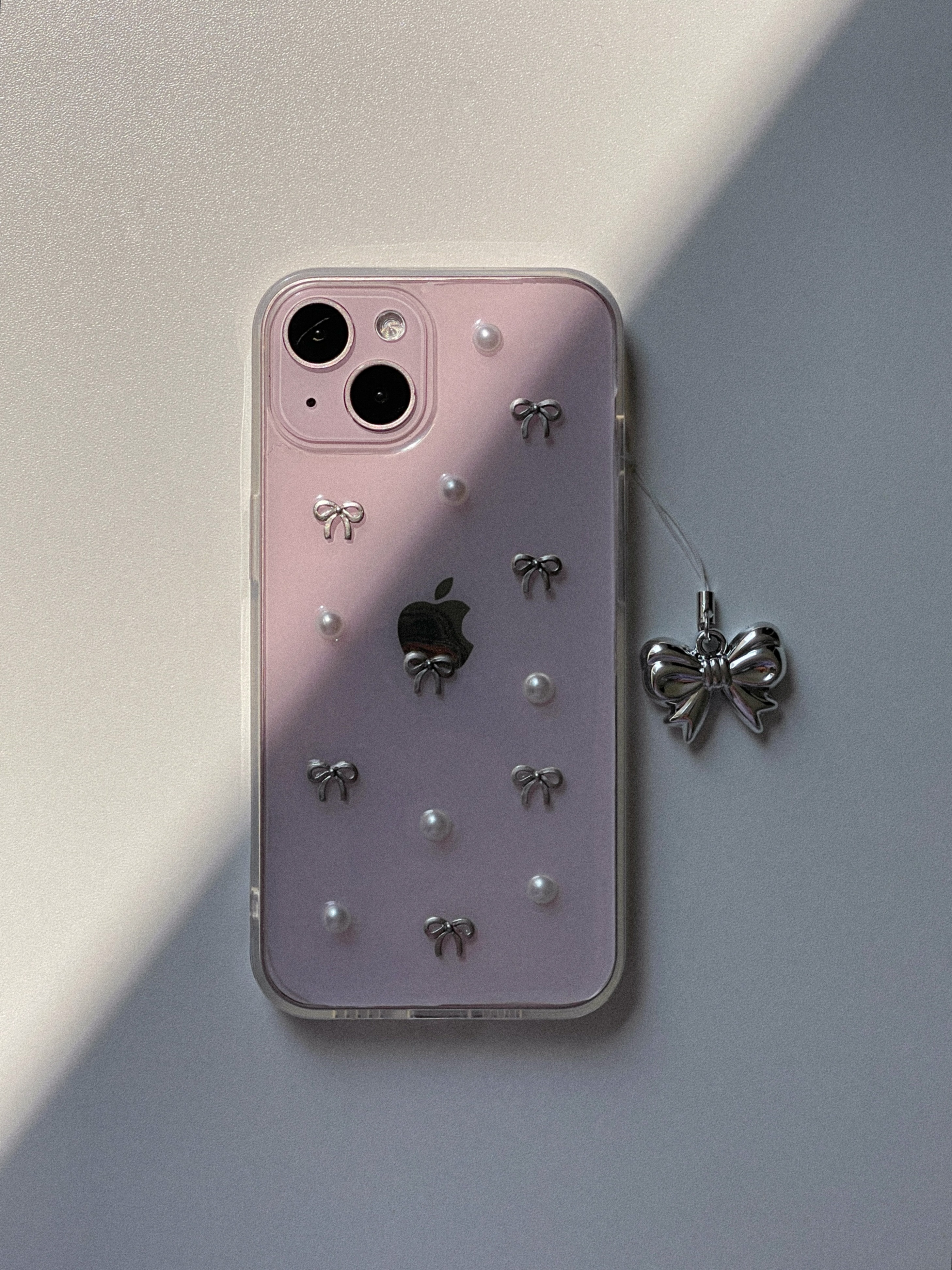아이폰15추가)silver mini ribbon case 레진 폰케이스