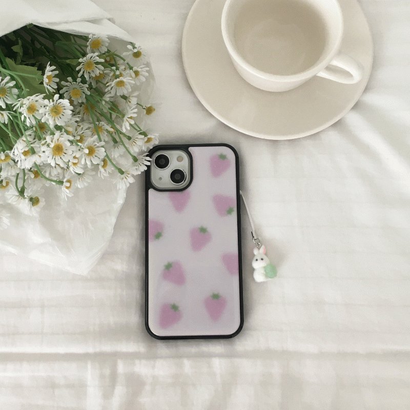 [+맥세이프] 클라우드 딸기 패턴 [블랙 에폭시 범퍼 케이스] 아이폰 갤럭시 제트플립